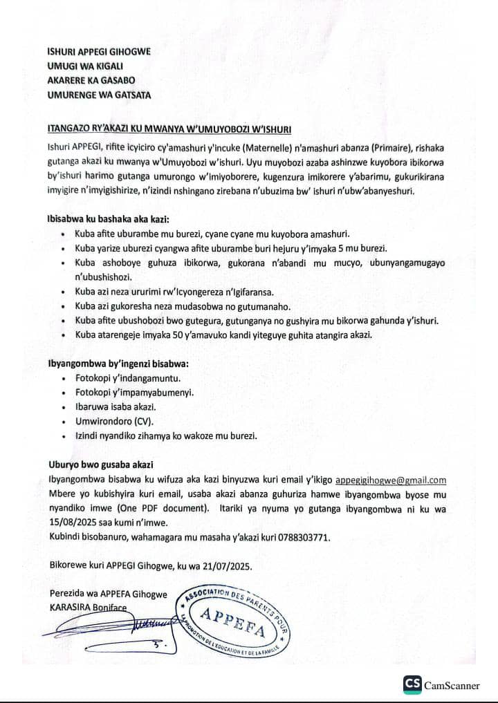 HomeBUSINES AND ENTREPRENEURSHIPAPPLY TO BECOME A SCHOOL DIRECTOR BUSINES AND ENTREPRENEURSHIP APPLY TO BECOME A SCHOOL DIRECTOR By TEACHERS August 7, 2025 0 302 Share FacebookTwitterPinterestWhatsApp Handsome Afro American businessman in classic suit and eyeglasses is using a laptop and making notes while working in office Share FacebookTwitterPinterestWhatsApp Previous articleA youngster is detained by Swedish police following a deadly quadruple shootingNext articleMANY TEACHING JOBS AT EXCELLENT PARENT SCHOOL ASSOCIATION (ALPHA EPSA). TEACHERShttps://www.teacherfeeds.com RELATED ARTICLES BUSINES AND ENTREPRENEURSHIP TeacherFeeds — Smart Tools, Real Support, Better Teaching February 5, 2026 BUSINES AND ENTREPRENEURSHIP 🚀 Business Idea: TeacherFeeds Pro February 5, 2026 BUSINES AND ENTREPRENEURSHIP Three (3) Employment Opportunities at Rwanda Environment Management Authority (REMA) January 12, 2026 LEAVE A REPLY Cancel reply Comment: Please enter your comment! Name:* Please enter your name here Email:* You have entered an incorrect email address! Please enter your email address here Website: Save my name, email, and website in this browser for the next time I comment. - Advertisment - Most Popular The Power of Small Daily Habits: How Tiny Actions Create Massive Success Over Time February 11, 2026 The Power of Small Daily Habits: How Tiny Actions Shape a Successful Life. February 11, 2026 Principal / Head Master at ISANO Vocational Training Center (ISANO VTC) – Easy and Possible Organization (EPO) February 11, 2026 In-Country Finance Officer at AGRA Rwanda 2026 – Apply Before 20 February 2026 February 11, 2026 Load more Recent Comments